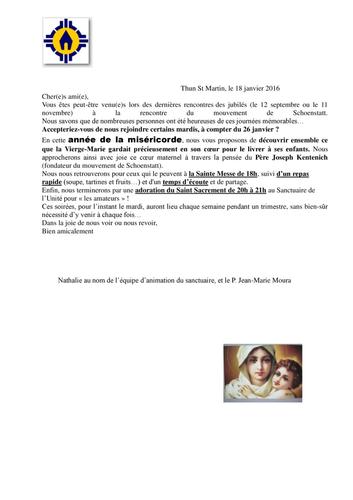 Pour tous, en cette année de la miséricorde, nous sommes invités à découvrir ce que Marie Gardait dans son coeur pour le livrer à ces enfants. A travers la pensée du P Kentenich.